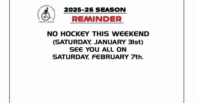 NO HOCKEY THIS WEEKEND (Saturday, January 31st)